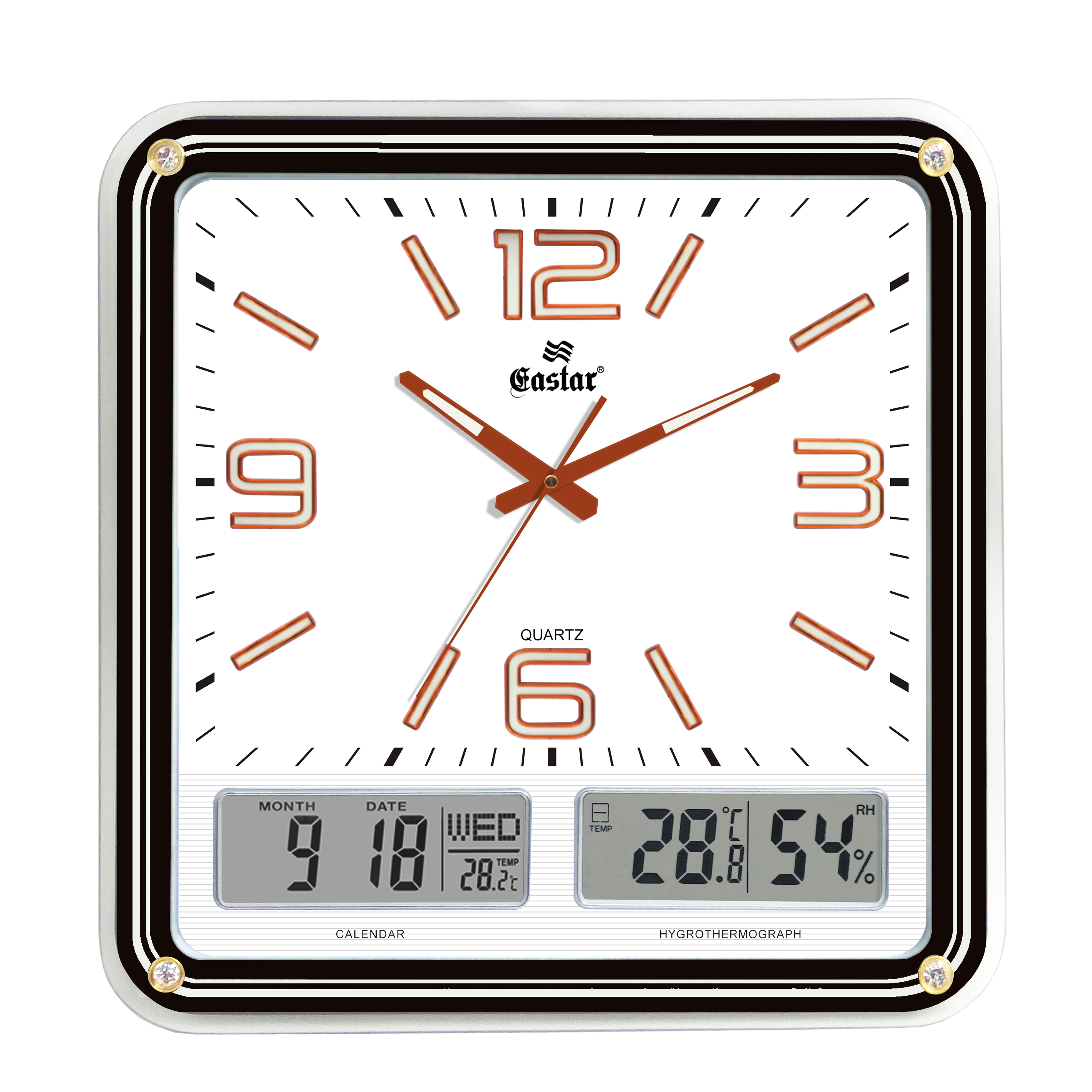Eastar A593YG A Bizote Camlı Fosforlu Duvar Saati (Sıcaklık & Nem Ölçer)