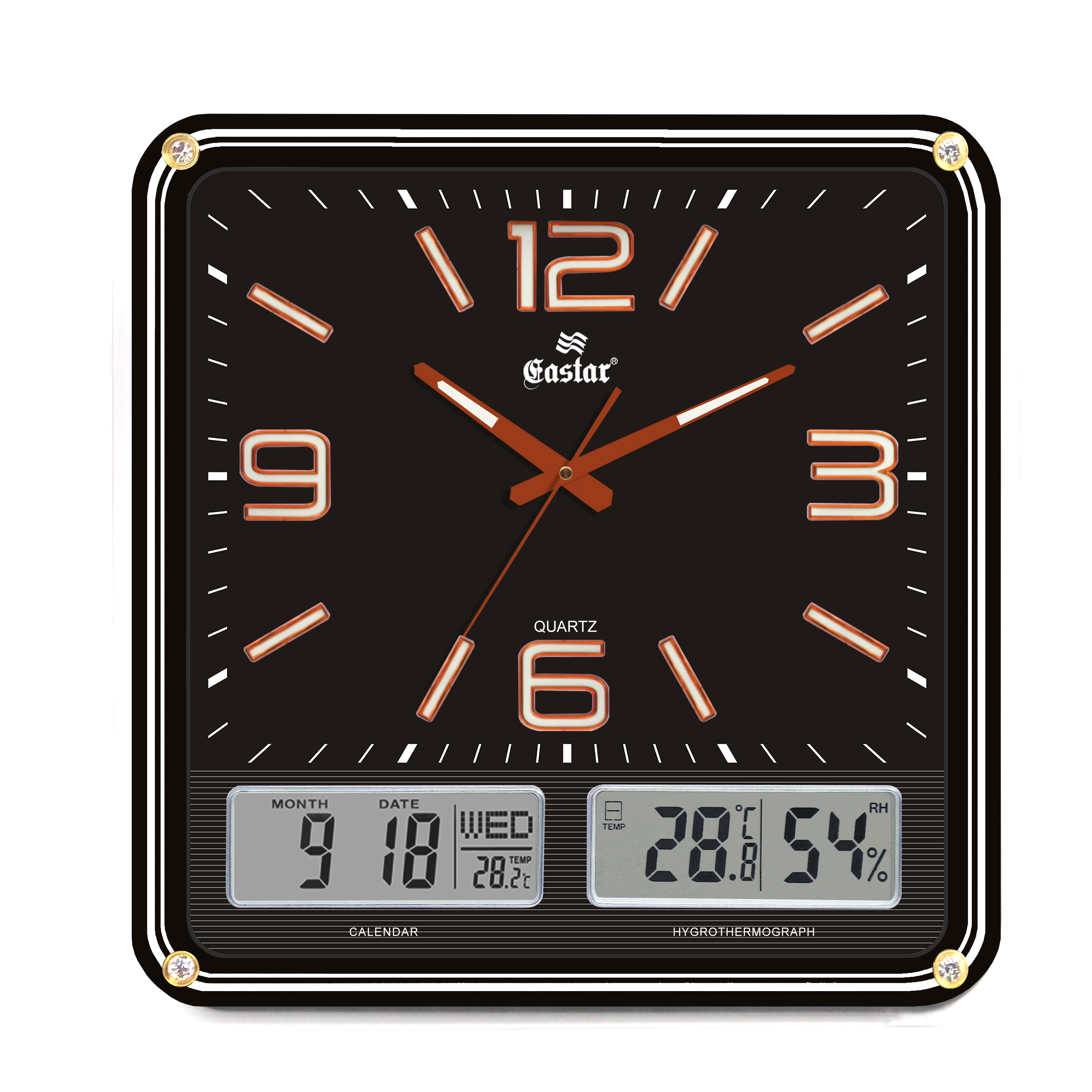 Eastar A593YG B Sıcaklık Nem Ölçer Fosforlu Duvar Saati