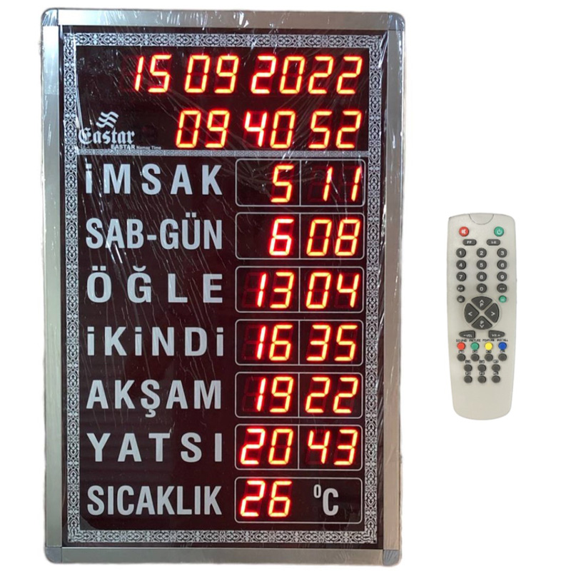 Eastar Namaz Vakitleri Saati Büyük Boy Kumandalı Krom